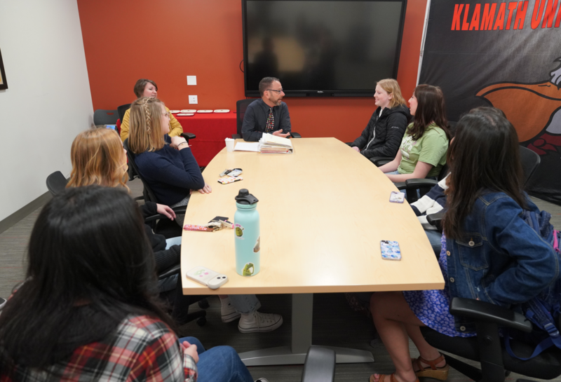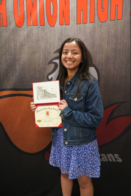 The students posed for a photo, were greeted, congratulated by their Klamath Union administrators and were informed by KU Principal, Tony Swan, what their next steps were before graduation.