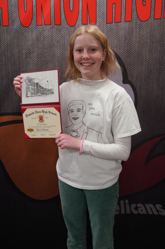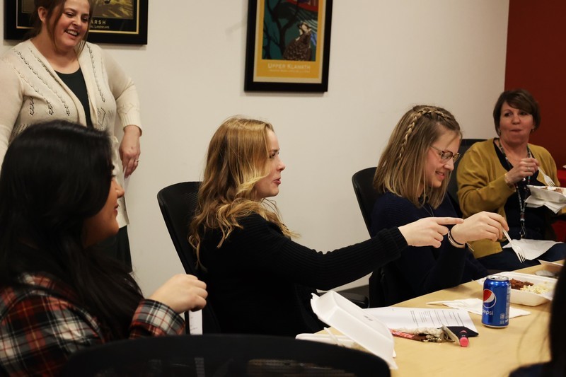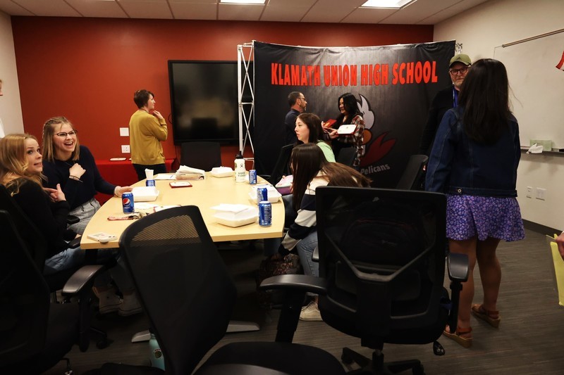 The excelling seniors were honored with a surprise lunch from North Shore Hawaiian Kitchen celebrating their outstanding academic achievements. The Klamath Union valedictorians are Alexis Dahm, Anne Peterson, Kadence Geraud, Julia Knudson, Natalie Krueger, Ameesha Hazarika and salutatorian Maria Osuna Gonzales. Kate Rodriquez also joins the group as valedictorian but was not on campus this past Tuesday.