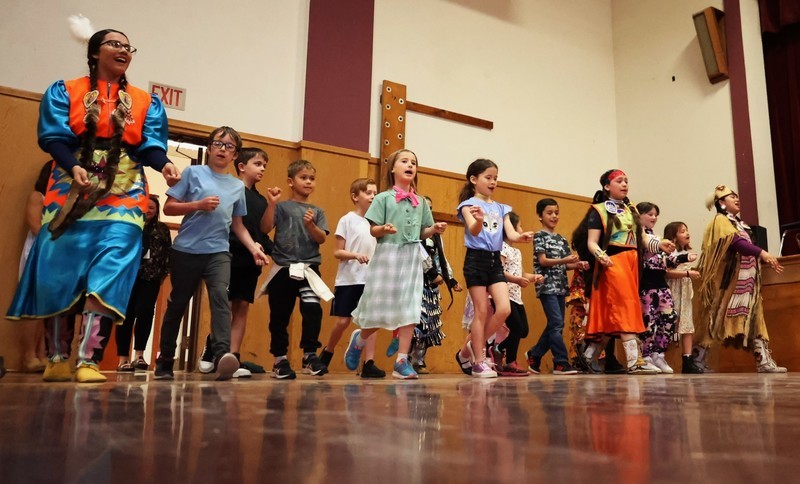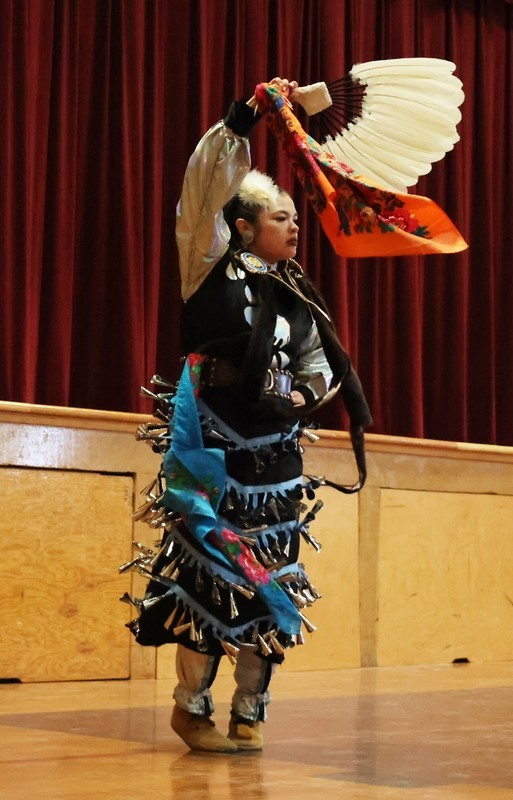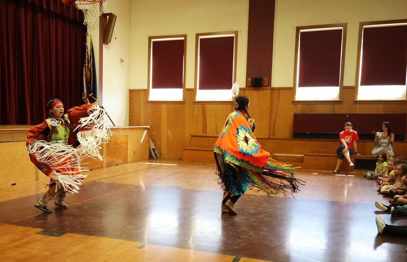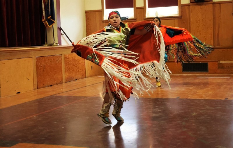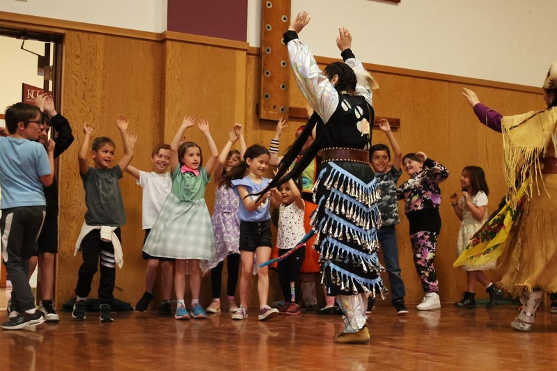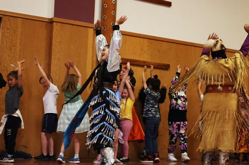 Hannah Schroeder from The Klamath Tribes helped put together the event and showcased various Native American culture dances, which included showing Pelican students steps to a dance.