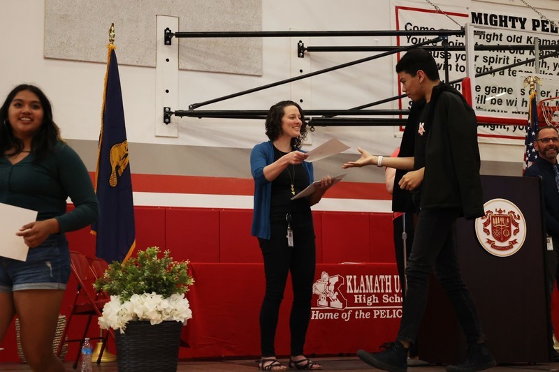 Students came together with Klamath Union administrators and their teachers for Academic Achievement Awards. This year's awards are to recognize outstanding academic accomplishments of Klamath Union High School students.