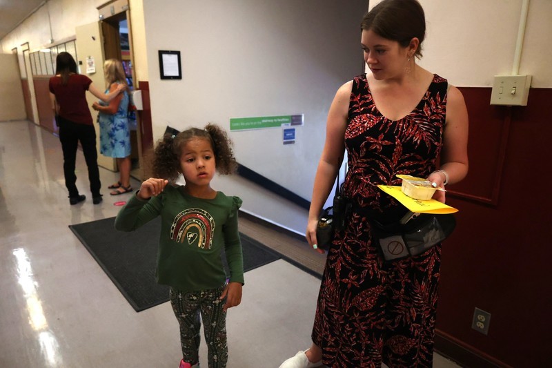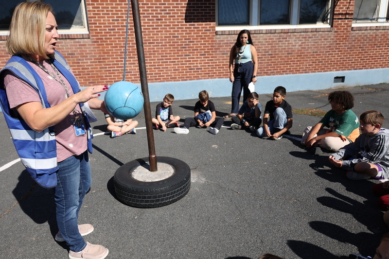 Split into groups, Johnson helped her students remember the school's after school pick-up procedure, along with where they will meet for getting on the school bus.