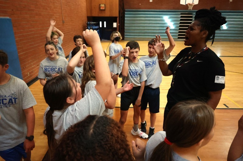 Ponderosa Physical Education teacher, Joel Woodley, helped bring a set of basketball classes with Blazers personnel to Ponderosa.